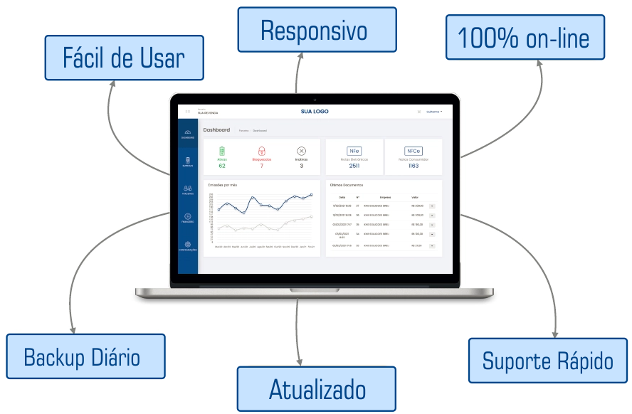 Nosso sistema foi desenvolvido para tornar a emissão de notas fiscais uma tarefa simples e eficiente. Com uma plataforma fácil de usar, rápida, intuitiva e sempre em conformidade com a legislação, você ganha mais tempo para focar no crescimento do seu negócio enquanto garante segurança fiscal em cada operação.